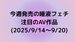 新作情報 今週発売の唾液フェチにおススメAV作品(2025/9/14~9/20) 今週発売したAVで、唾液フェチの方におススメできそうな作品を紹介します! 2D映像作品 舌ベロマスター 辻井ほのかのエロ長い舌シリーズ特別編 女優名辻井ほのかメーカー舌ベロマスター監督---- FANZAで詳細を確認! 舌ベロマスター 橘内... 2025.09.21 新作情報